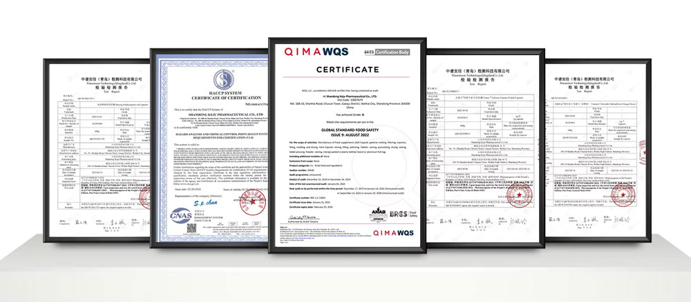 Our products are backed by rigorous quality management and internationally recognized certifications, including HACCP, ISO22000, BRC, and GMP. From raw material sourcing to production and packaging, every step is strictly monitored, with comprehensive testing in our independent laboratories to ensure safety, stability, and compliance. Trusted by clients worldwide, our commitment to quality guarantees reliable products and long-term partnerships.